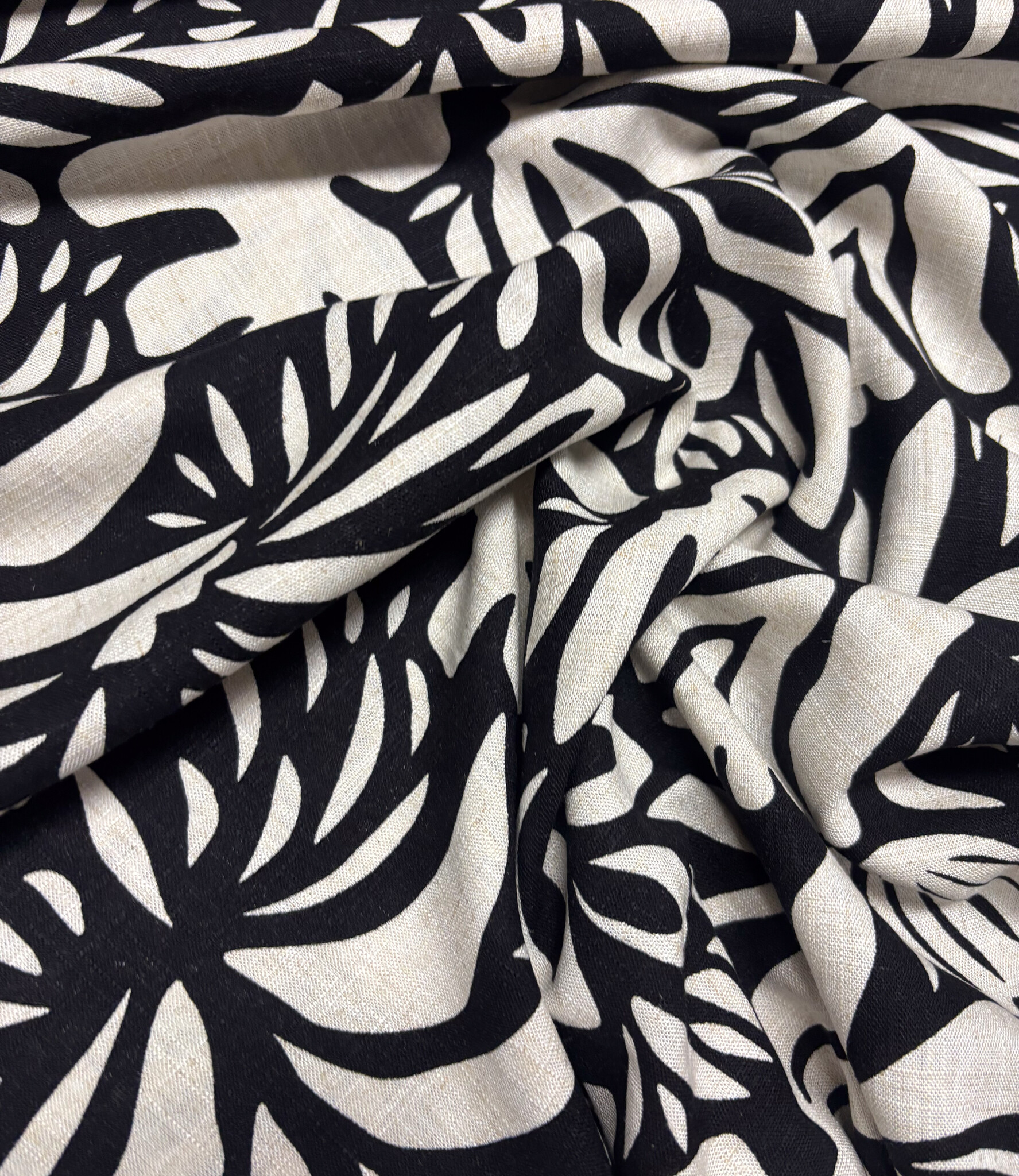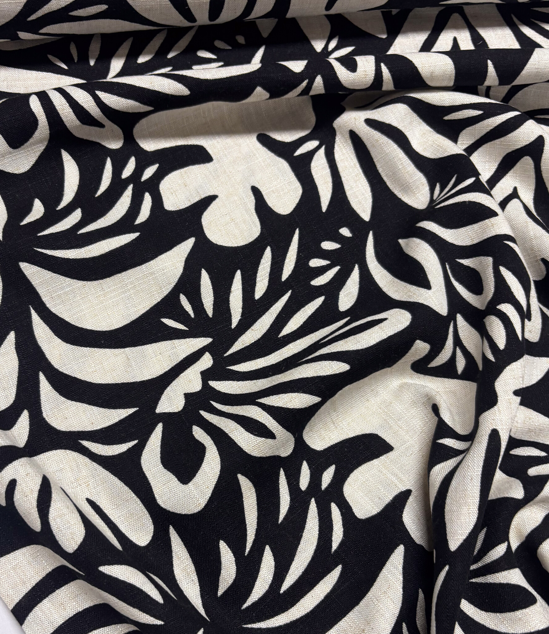 Een hele mooie, soepelvallende kwaliteit linnen rayon mix met bloemen. Perfect voor zomerse kleedjes, blouses, rokken of losse broeken.