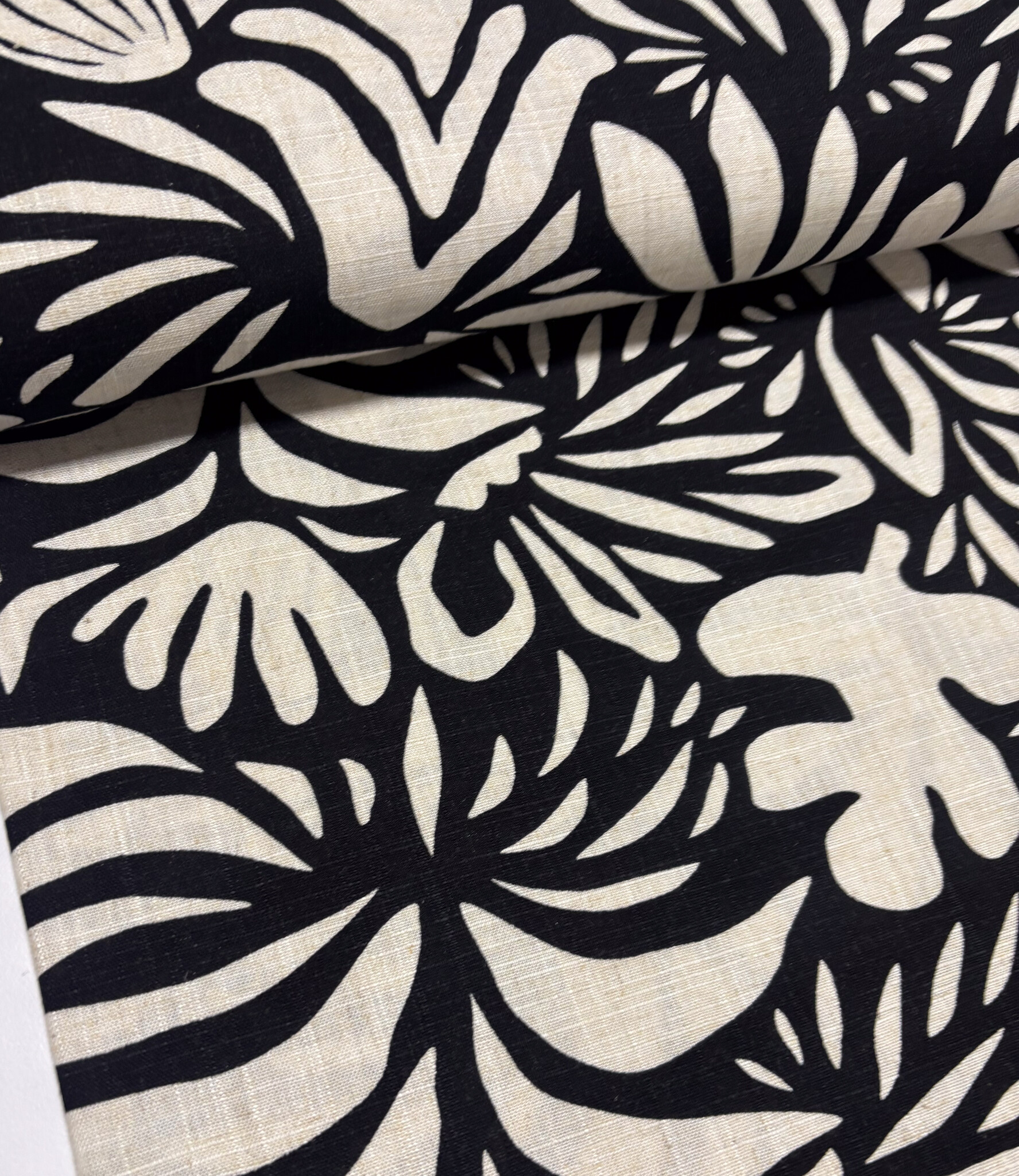 zwart flowers - linnen rayon blend - Madeline de stoffenmadam - Stoffenwinkel Lier ( Antwerpen )