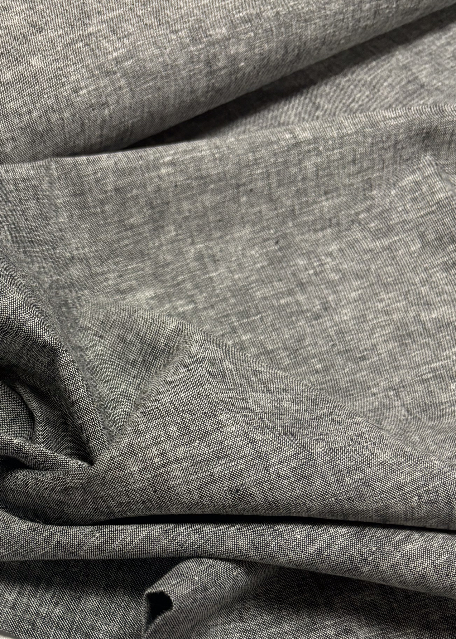 Een soepelvallende linnen katoen mix (chambray). Perfect voor broeken, kleedjes, bloezen, ...