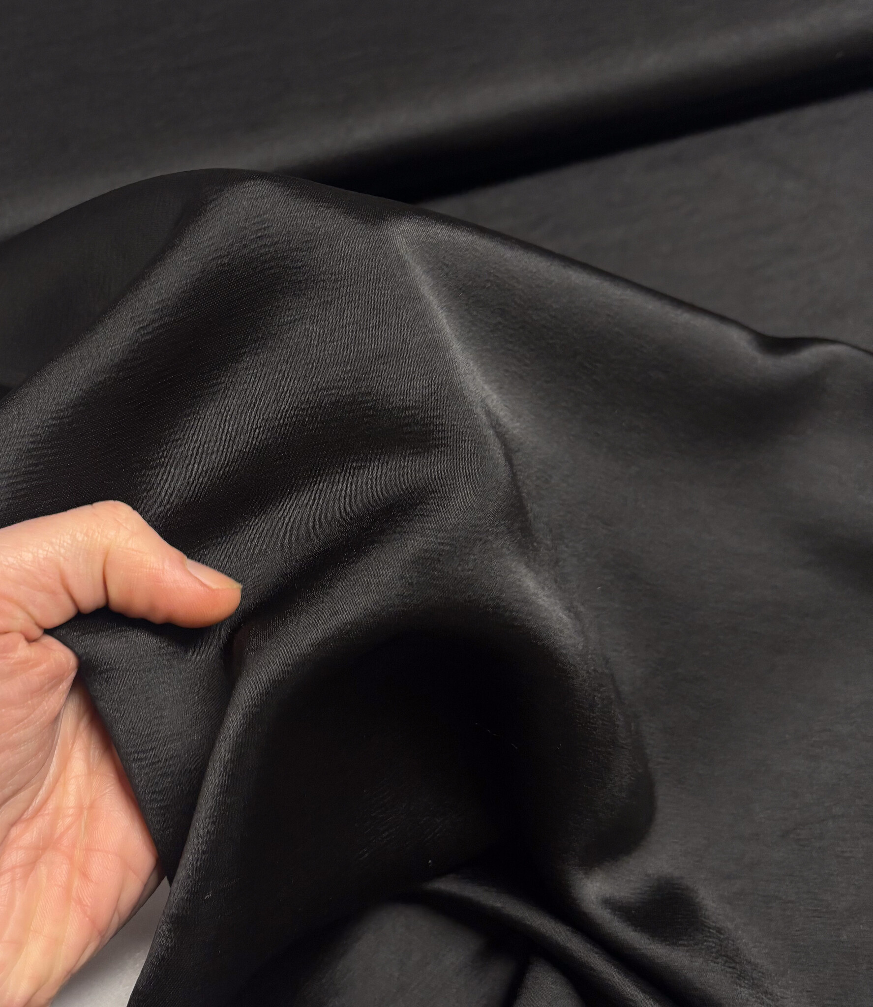 Prachtige kwaliteit satijn. Deze iets zwaardere maar soepelvallende stof heeft een mooie mat glanzende zijde, perfect voor stijlvolle kleding.