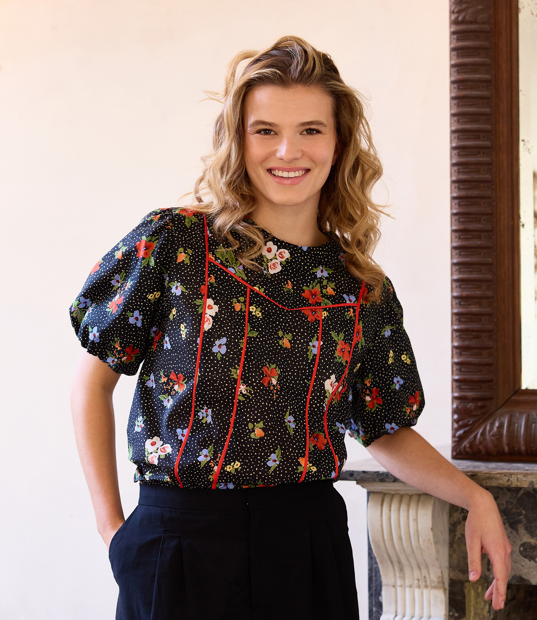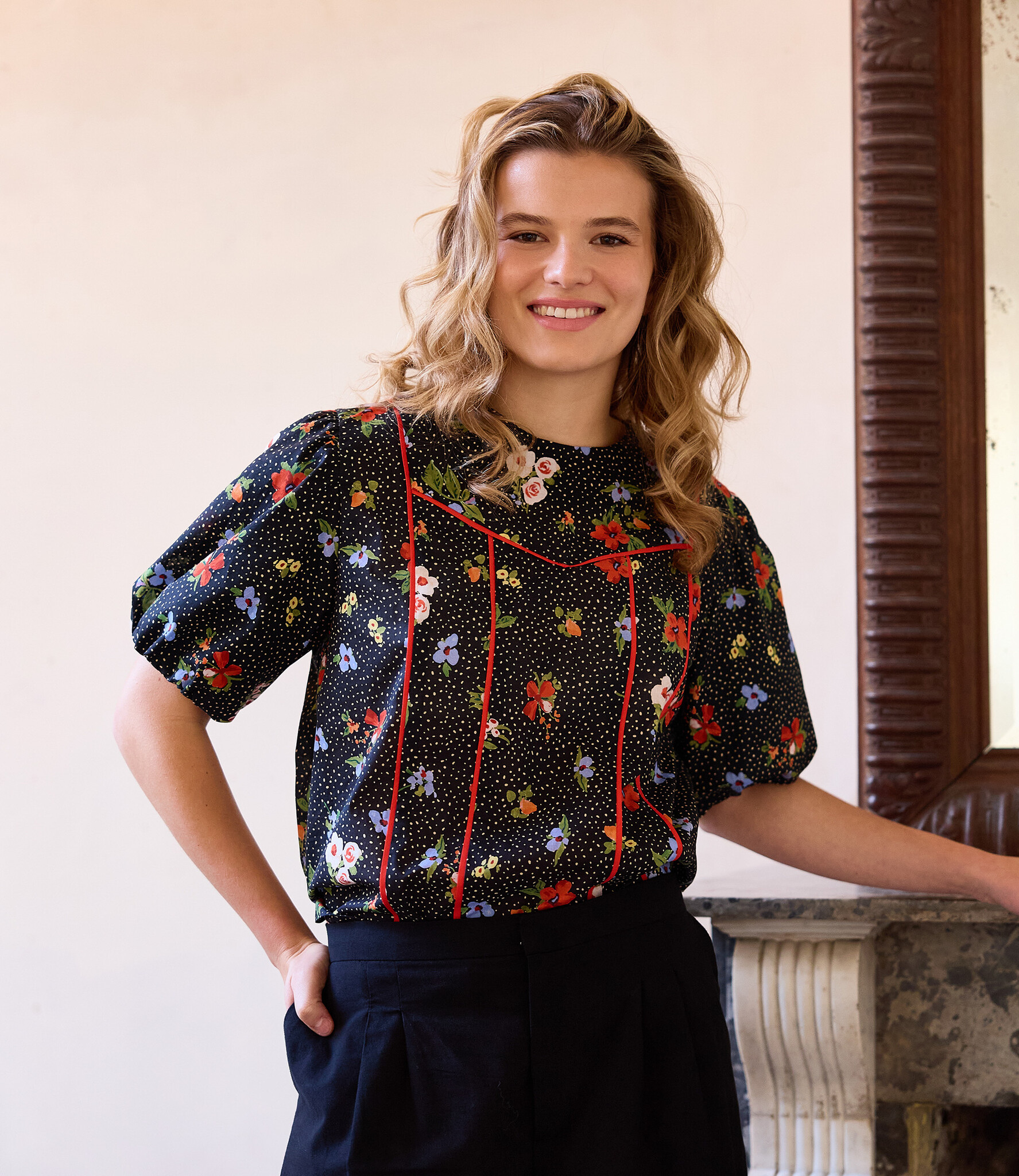 Atelier Jupe maakte de Rosie bloes en Sophie top in deze stof.