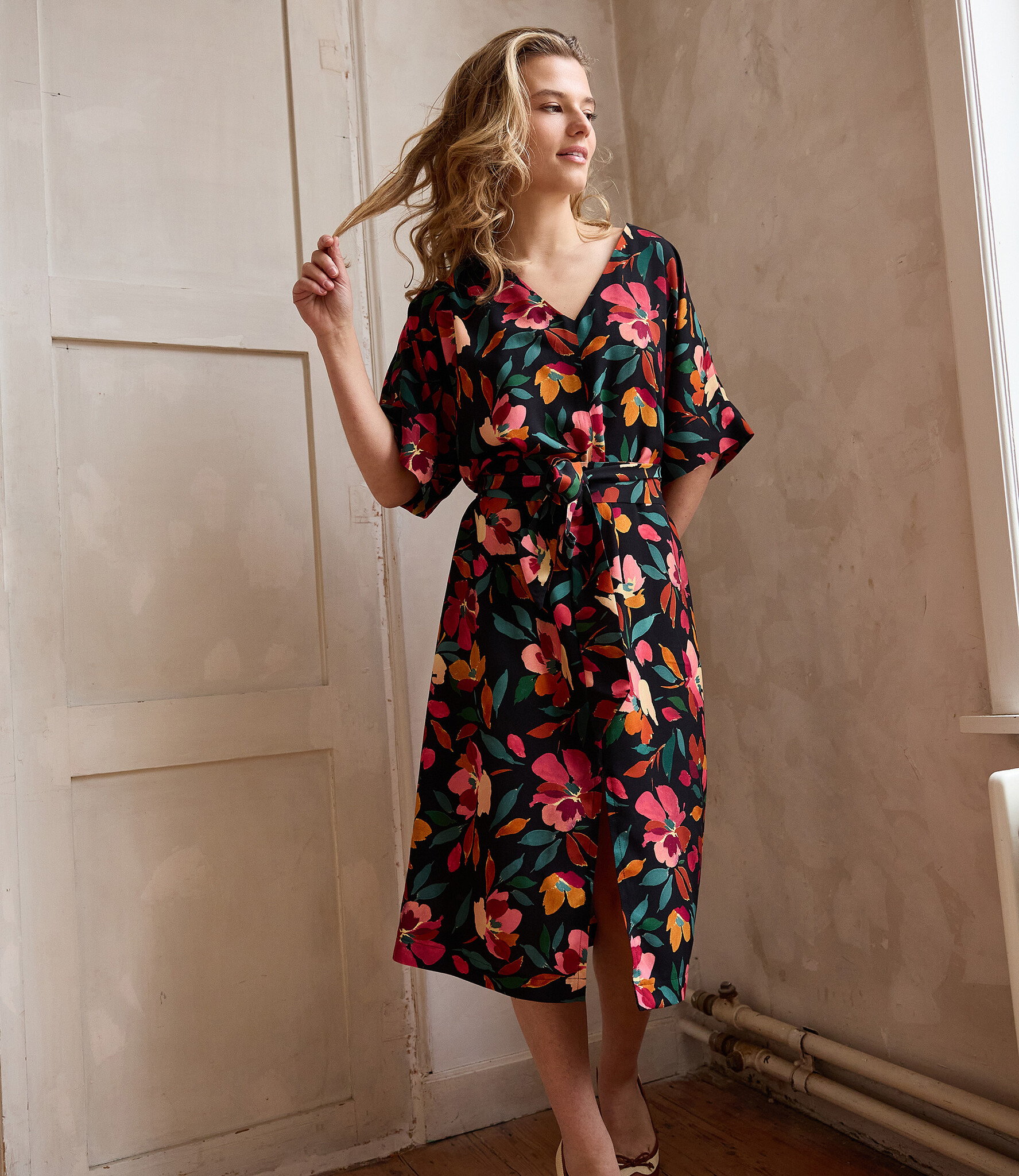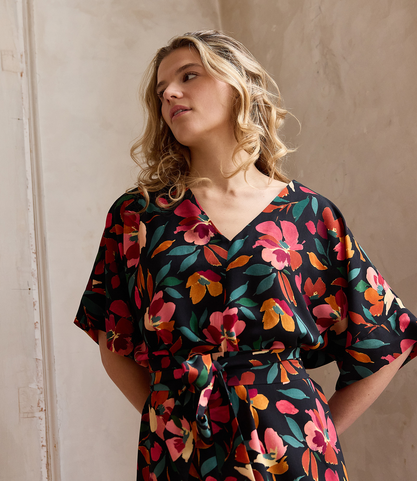 Wasvoorschriften: machine wasbaar op 30 ° op een delicaat programma, strijken op lage stand aan de binnenkant van de stof en niet in de droogkast. Was de stof steeds voor, ze heeft een krimppercentage van 3%.